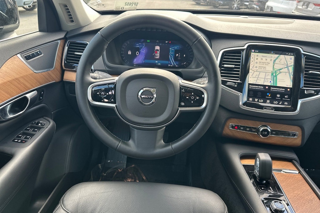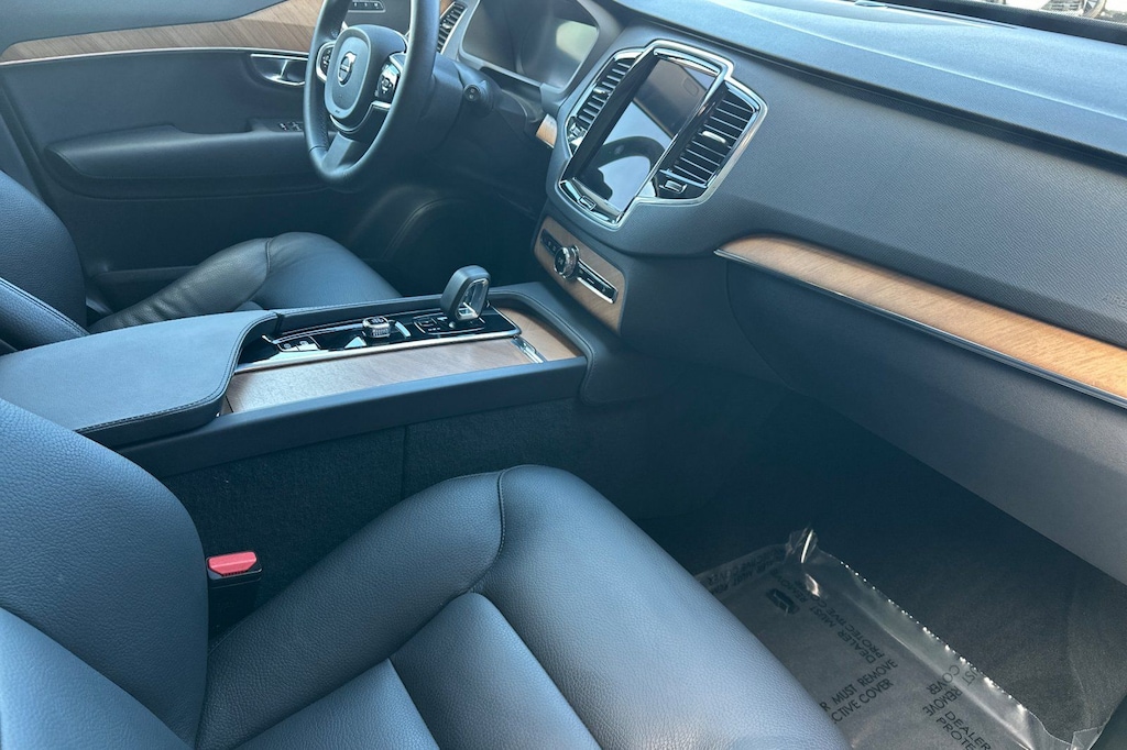 Certified. Black 2025 Volvo XC90 B6 Plus 7-Seater AWD Automatic with Geartronic 2.0L I4 Turbocharged DOHC 16V LEV3-ULEV70 AWD, Gray Leather.