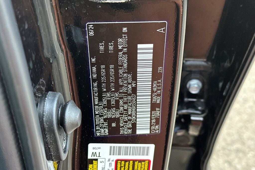 Midnight Black Metallic 2024 Toyota Highlander LE AWD 8-Speed Automatic 2.4L I4 PDI Turbocharged DOHC 16V LEV3-SULEV30 265hp AWD, Air Conditioning, AM/FM radio: SiriusXM, Power Liftgate, Remote keyless entry, Spoiler.